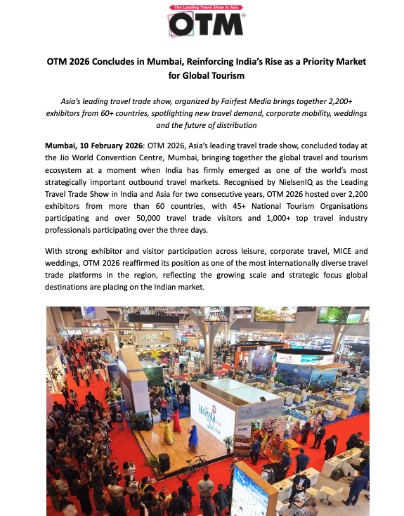 For two consecutive years, OTM has been certified as the ‘Leading Travel Trade Show in India and Asia’ in a customized study led by NielsenIQ in 2024 and 2025, commissioned by Fairfest Media.
